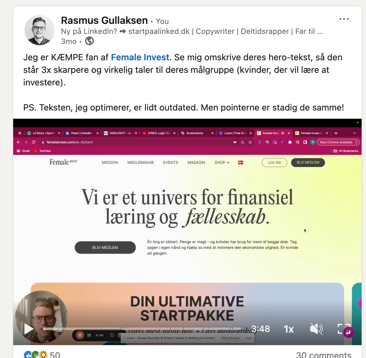 Da jeg var ny i mit felt og startede ud som copywriter besluttede jeg mig for at skrive dagligt på LinkedIn i 365 dage.